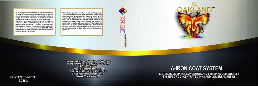 Estos sistemas se mezclan en relación 2 a 1, es decir 2 kilos de resina binder con 1 kg de tintas. La resina binder de este sistema también son universales pueden mezclarse con todos los sistemas antes mencionados pero si lo mezcla con poliuretanos puede perder brillo el sistema poliuretano. Para preparar sistemas poliuretanos utilizar como binder el transparente RS OAKLAND 7700.
